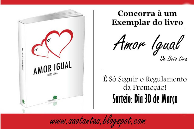 Hoje o Blog São Tantas Coisas, abre o Sorteio do Livro autografado “Amor Igual” de Beto Lima, Autor Parceiro, publicado pela Editora Parceira: Baraúna... Já trouxe a resenha do livro aqui no blog, vamos conferir um trecho da resenha? O livro é diferente de tudo que você já leu, uma história de amor diferente, mais igual a todos os outros...