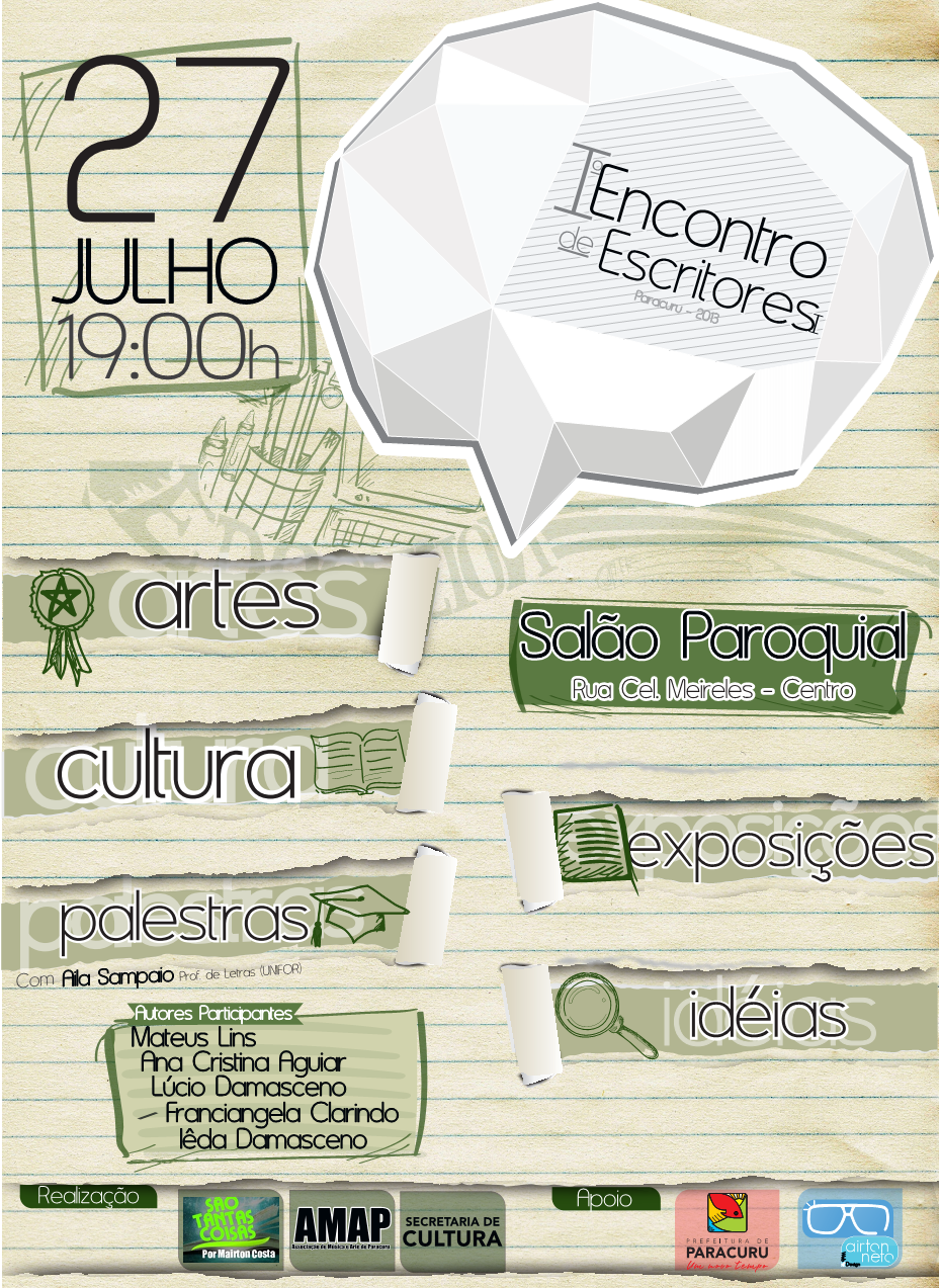 Quer conhecer mais sobre a Série Tronos de Luz e mais sobre a autora Ana Cristina Aguiar? Então não deixe de comparecer ao I Encontro de Escritores em Paracuru, dia 27 de julho, 19hs no Salão Paroquial. Todos estão convidados.