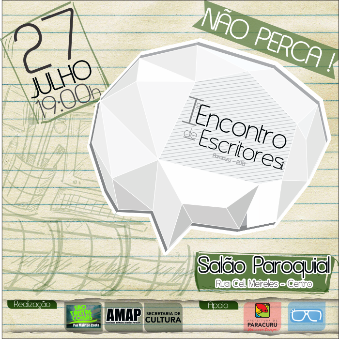 Quer conhecer ainda mais o autor e sua obra? Então compareça ao primeiro o 1º Encontro de Escritores em Paracuru, dia 27, sábado, a partir das 19 horas no salão Paroquial.