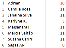 No fim, somente cinco pessoas ficaram empatadas, tendo comentado nos 11 posts que saíram durante o mês. Lembrando que post de resultado de promoção não era computado para o top!